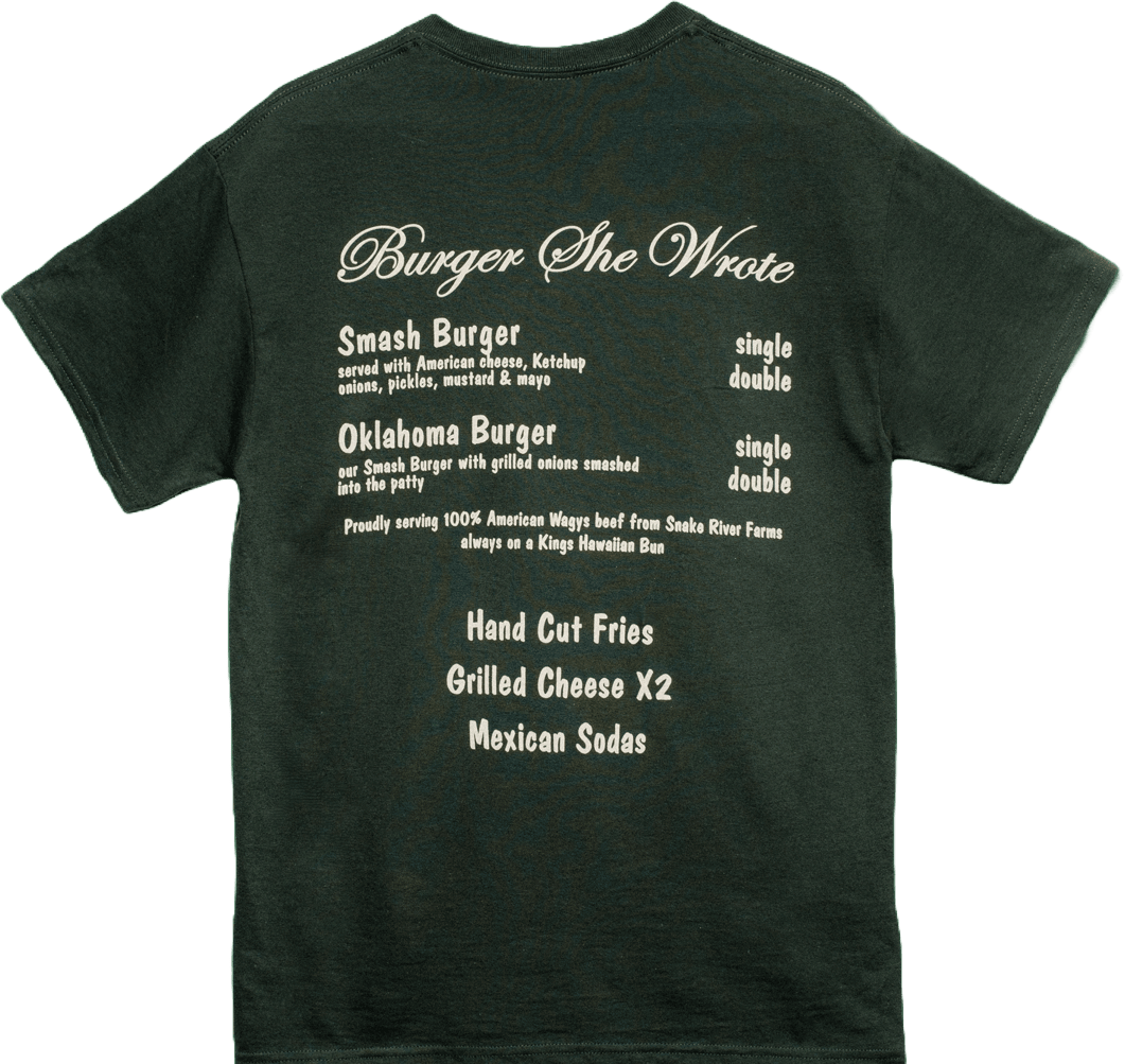 Screen-printed in LA! Front has our logo and the back features our iconic menu.